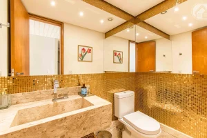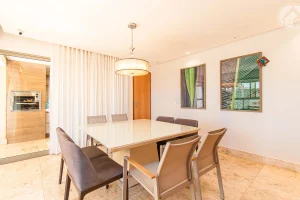 Possui sala com dois ambientes, lavabo, área de serviço e uma cozinha espaçosa com varanda integrada para você fazer aquele jantar com os amigos.