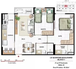 Descubra o conforto e a praticidade de viver no Le Quartier Boulevard, um empreendimento moderno e completo. Este lindo apartamento de 2 quartos (2 suítes) com 62m², varanda e mobiliado com requinte (porteira fechada), está pronto para você entrar e viver!