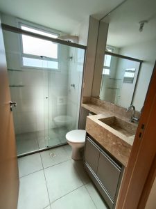 – 1 banheiro social com box em blindex, iluminação e ventilação natural;