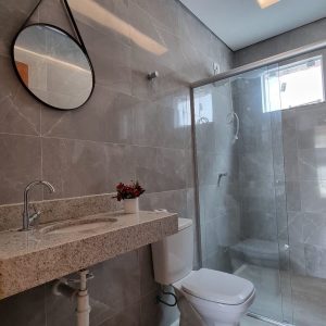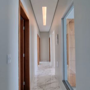 * Sala com rebaixamento de forro e projeto de iluminação;