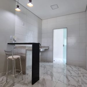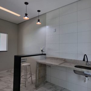 * Cozinha espaçosa com bancada americana e bancada da pia;
