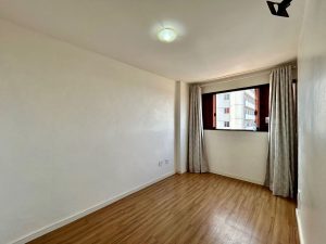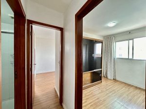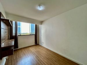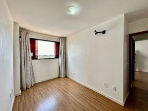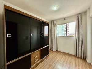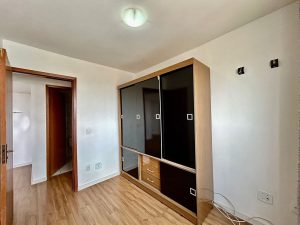 2 quartos, sendo 1 suíte, sem armários embutidos.