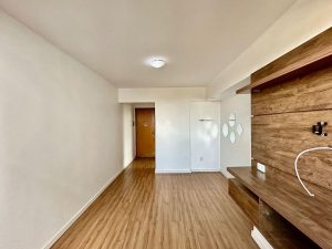 Sala para 2 ambientes, com painel de TV.