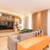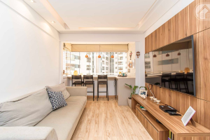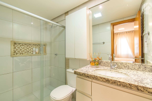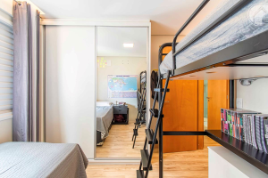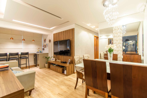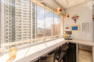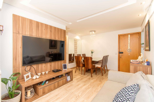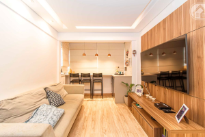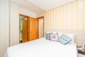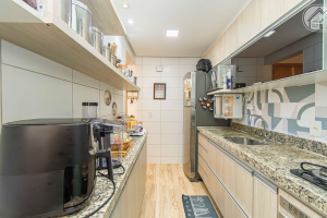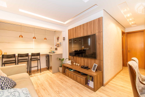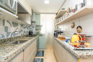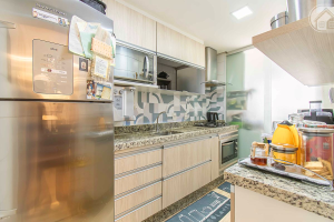 Apartamento com 62m², localizado em andar alto, rico em armários planejados e com 2 vagas de garagem cobertas.