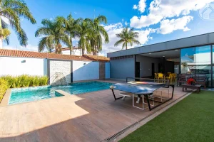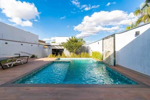 – Piscina pastilhada, aquecida, cascata e com hidromassagem